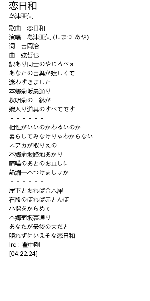 | [00:04.00] | 演唱:島津亜矢 (しまづ あや) |