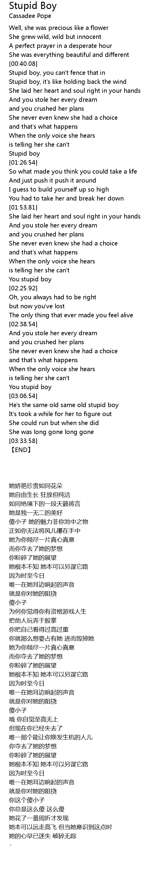 | [00:40.82] | Stupid boy, you can' t fence that in |