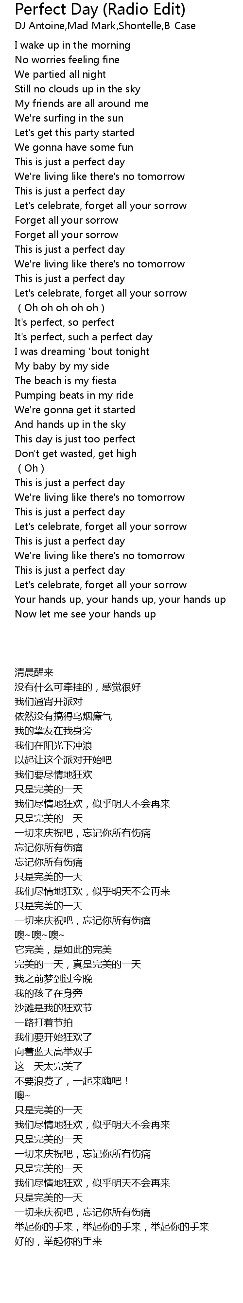 | [01:23.140] | It' s perfect, such a perfect day |