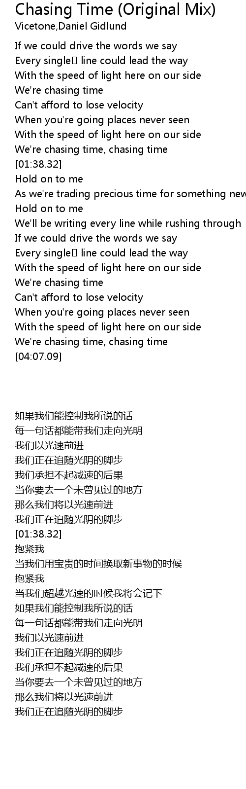 | [04:02.06] | We' re chasing time, chasing time |