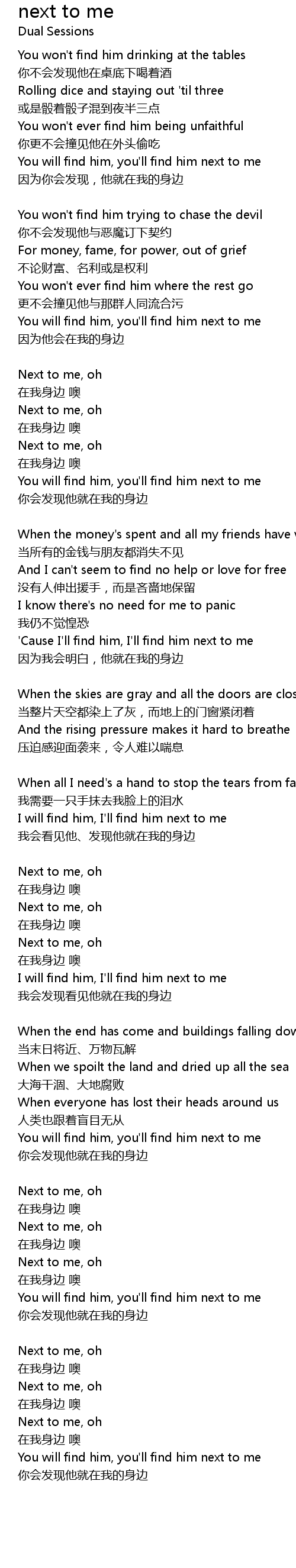 | ' Cause I' ll find him, I' ll find him next to me | |