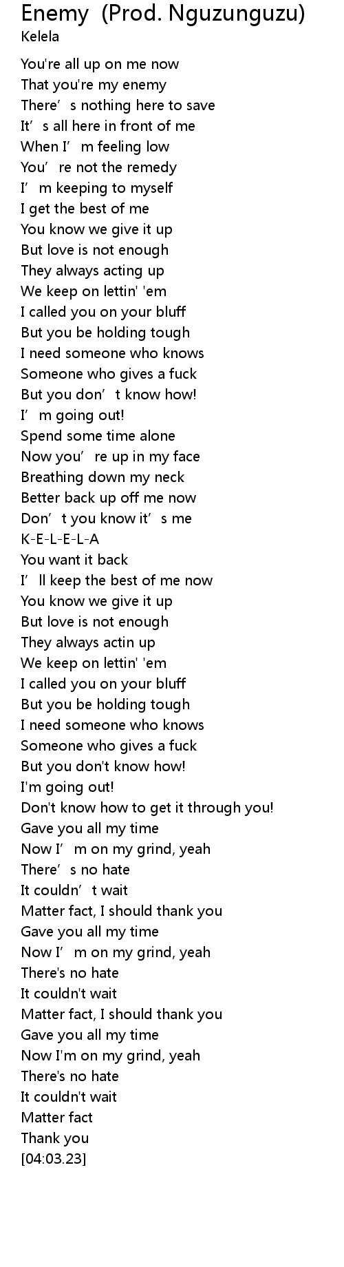 | [00:14.96] | That you're my enemy |