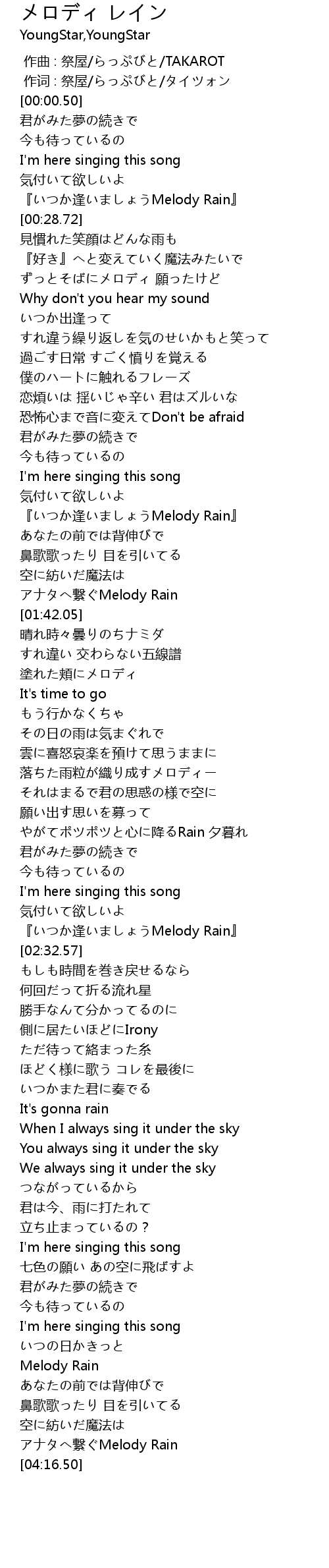 | [02:28.31] | 『いつか逢いましょうMelody Rain』 |