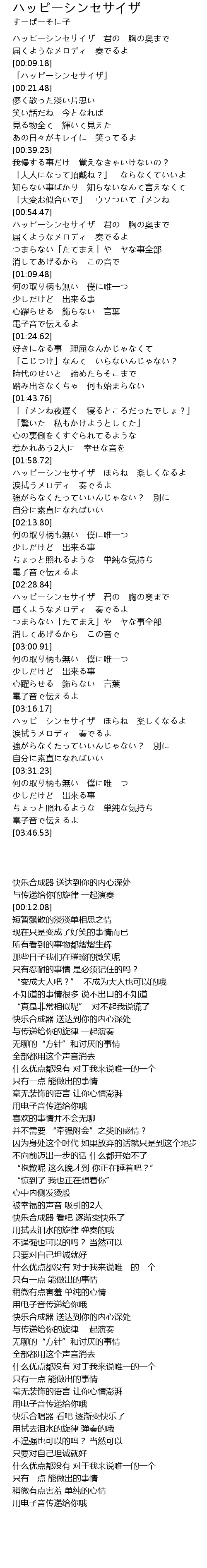 | [01:59.17] | ハッピーシンセサイザ ほらね 楽しくなるよ |