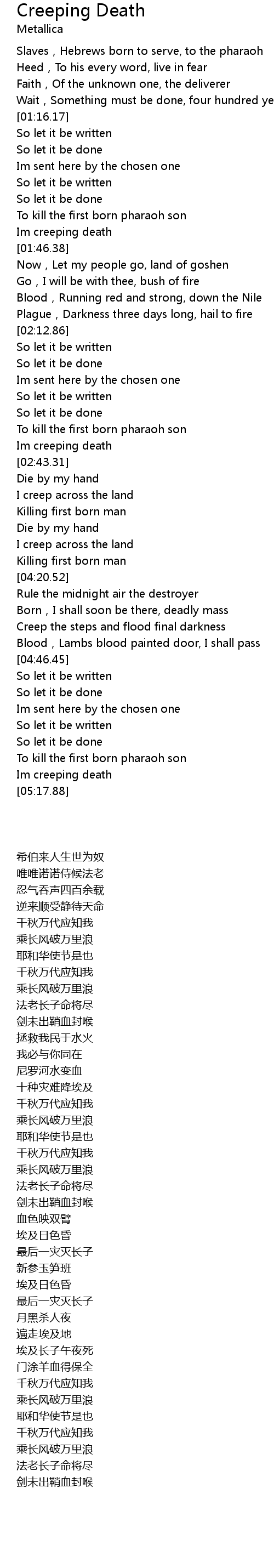 | [00:56.89] | Slaves,Hebrews born to serve, to the pharaoh |