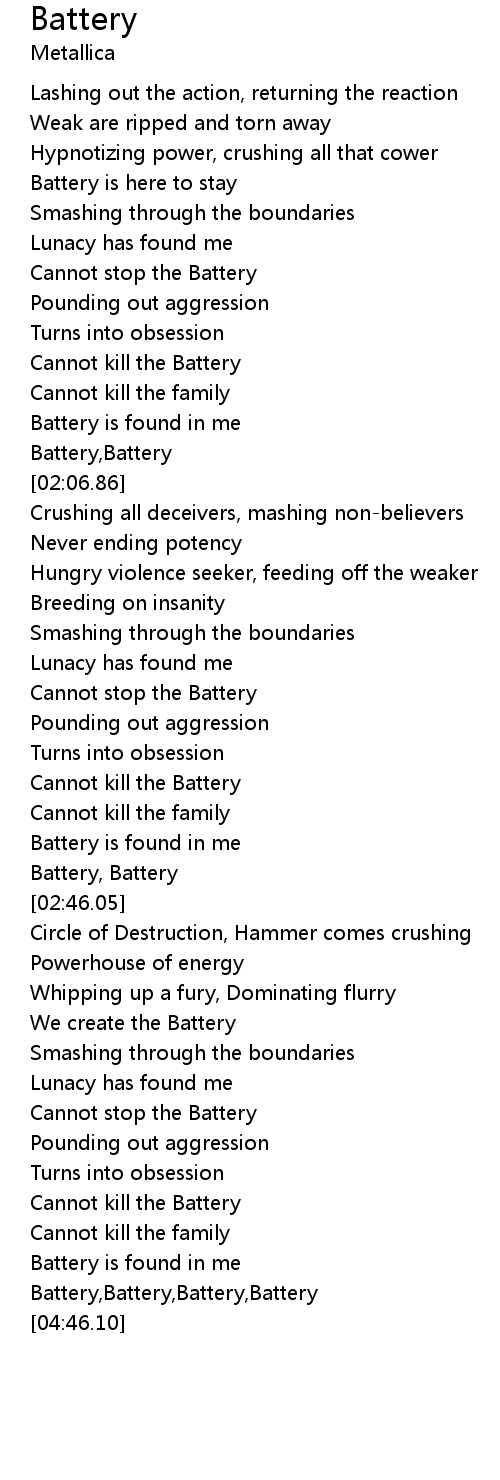 [02:00.34] Battery,Battery