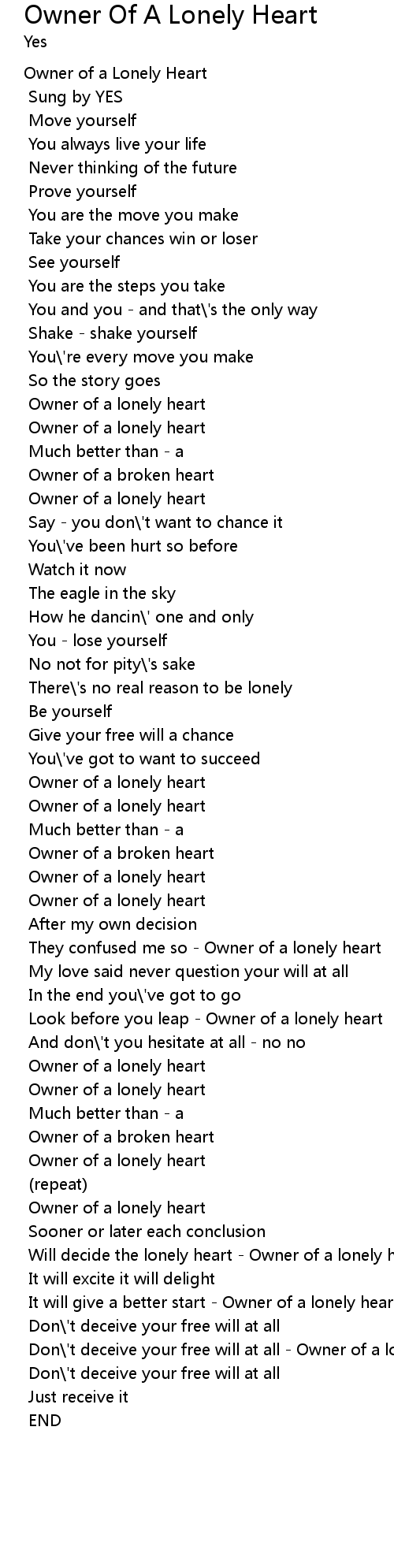 Don\'t deceive your free will at all - Owner of a lonely heart |
