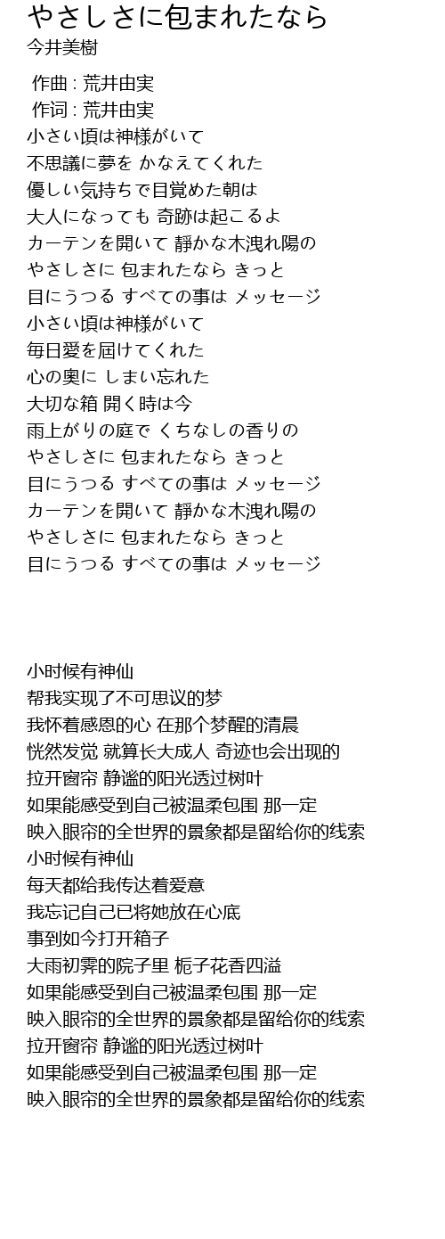 | [03:09.73] | やさしさに 包まれたなら きっと |