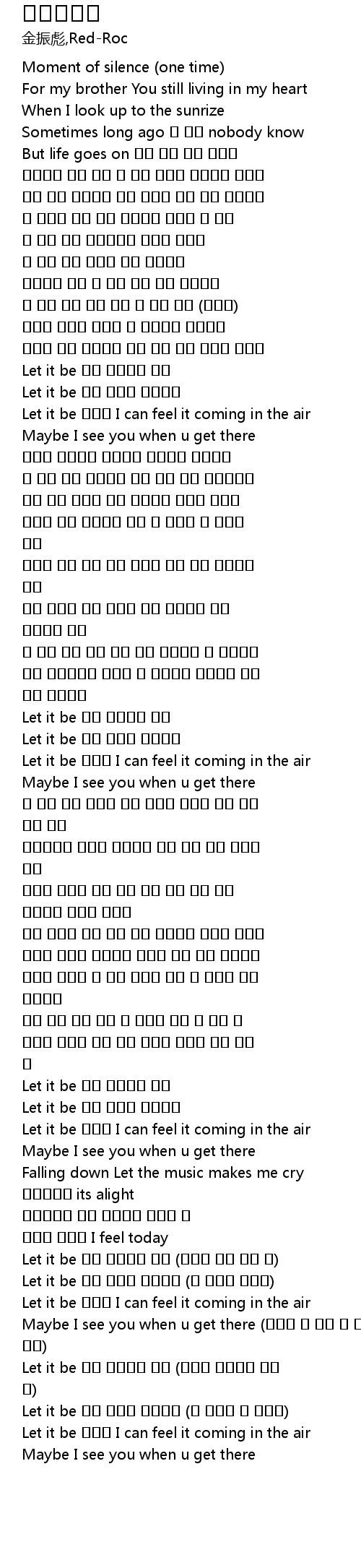 | [03:20.96] | Let it be 여전히 I can feel it coming in the air |