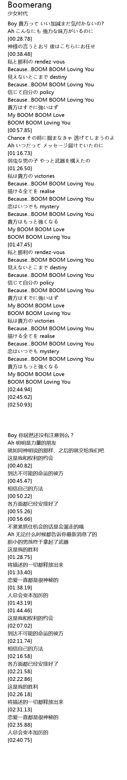 | [01:38.19] | Because...BOOM BOOM Loving You |