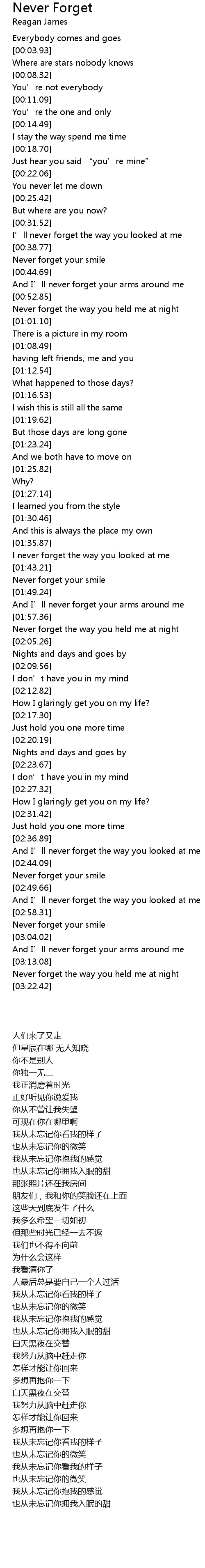 | [02:49.89] | And I’ll never forget the way you looked at me |