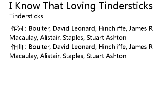 | [00:00.000] | zuò cí : Boulter, David Leonard, Hinchliffe, James Richard, Macaulay, Alistair, Staples, Stuart Ashton |