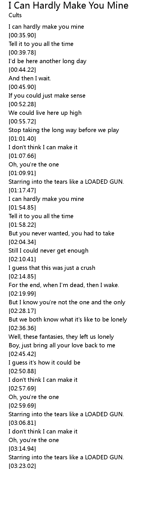 | [01:52.66] | I can hardly make you mine |