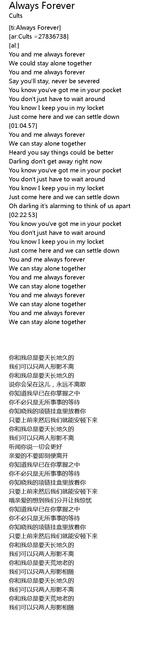 | [02:45.71] | You and me always forever |