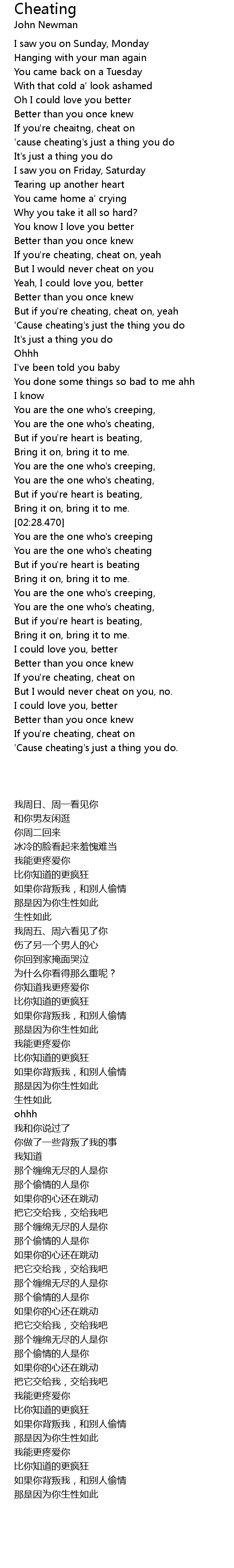 But if you're cheating, cheat on, yeah |