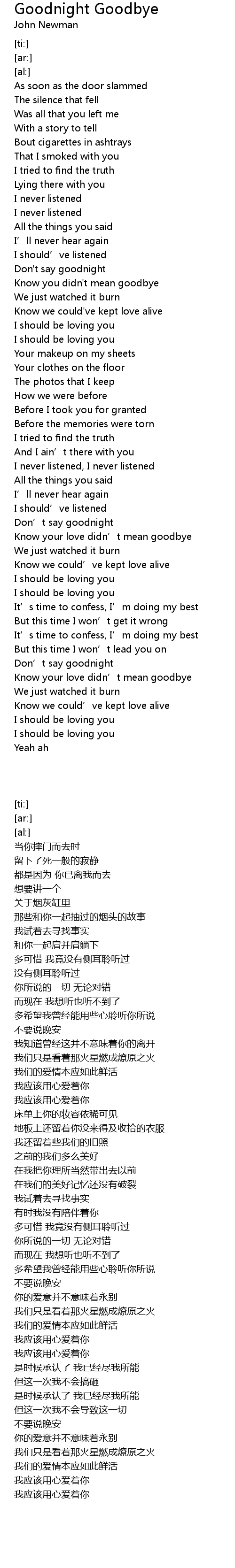 | [00:55.66] | Know you didn' t mean goodbye |