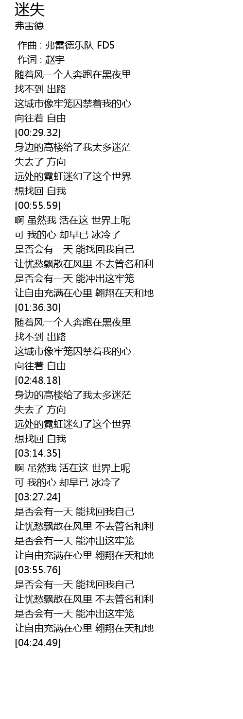 | [00:00.00] | 作曲 : 弗雷德乐队 FD5 |