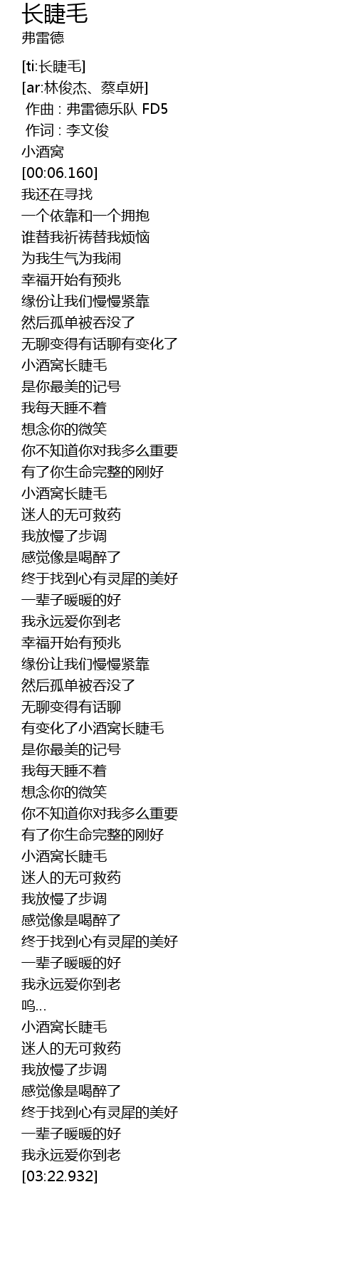 | [02:22.264] | 小酒窝长睫毛 |