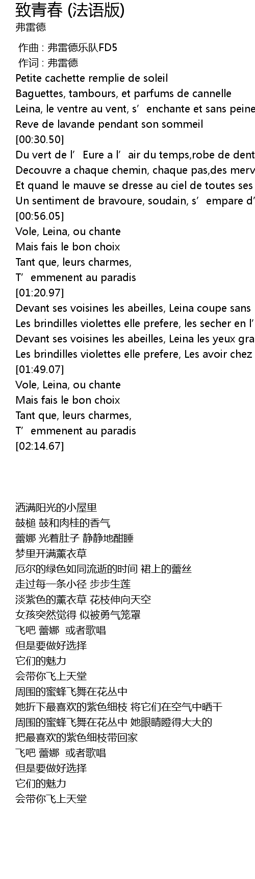 | [01:28.65] | Les brindilles violettes elle prefere, les secher en l' air |
