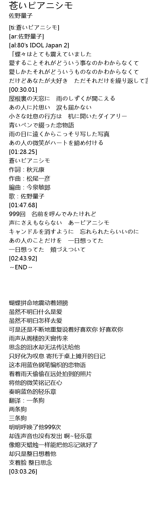 | [01:30.97] | 蒼いピアニシモ |