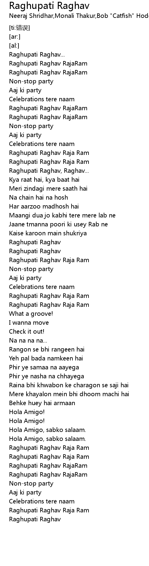 | [01:23.54] | Raghupati Raghav Raja Ram |