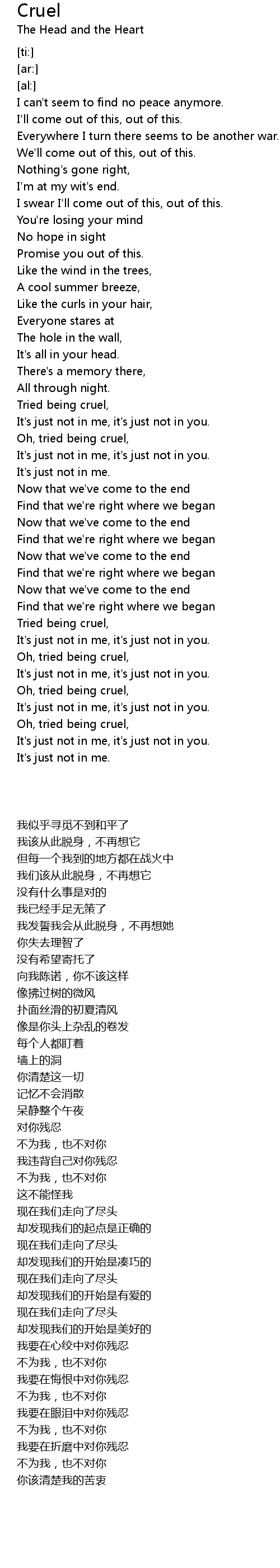 Oh, tried being cruel, |