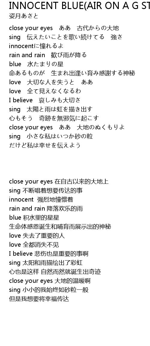 | Song | INNOCENT BLUE(AIR ON A G STRING) |