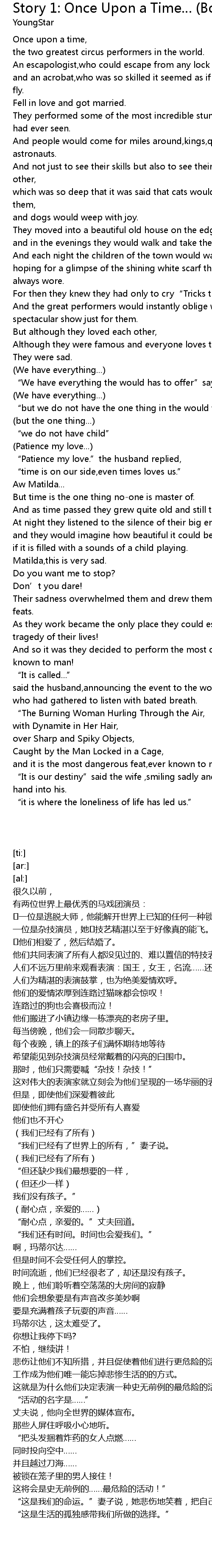 | [00:13.56] | and an acrobat, who was so skilled it seemed as if she could actually fly. |