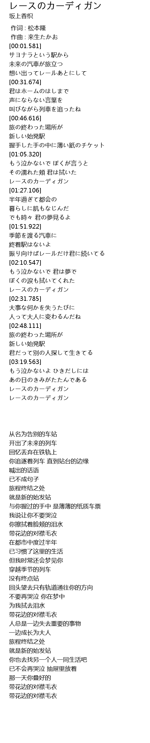 | [03:34.270] | レースのカーディガン |