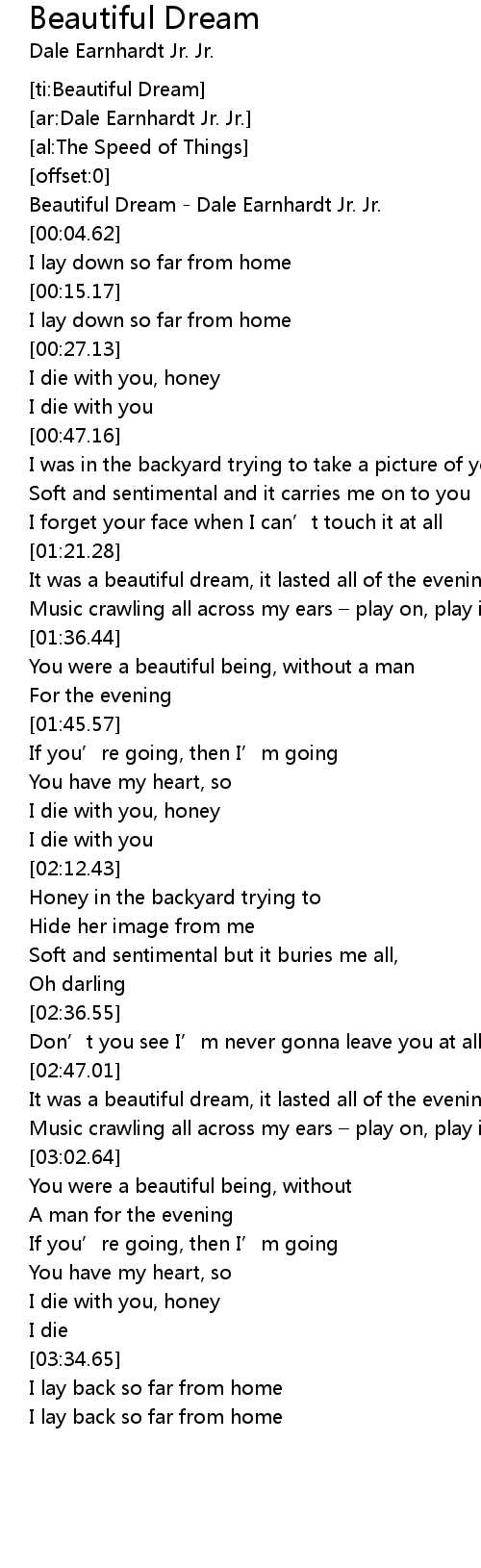 | [00:01.19] | Beautiful Dream - Dale Earnhardt Jr. Jr. |