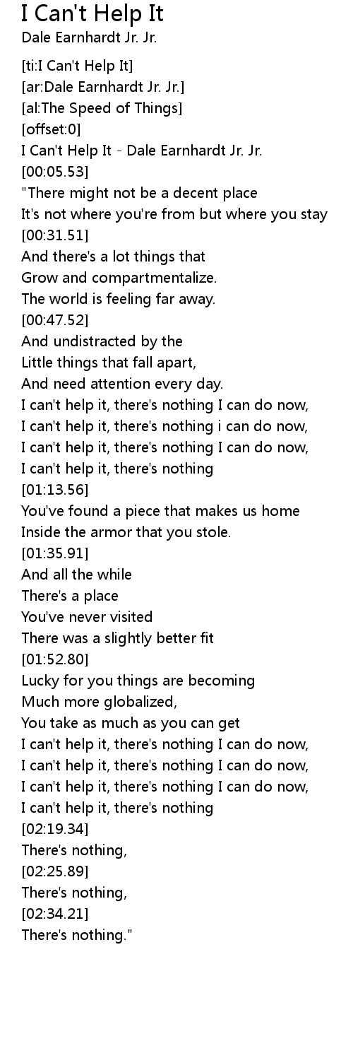 [00:01.02] I Can't Help It - Dale Earnhardt Jr. Jr.