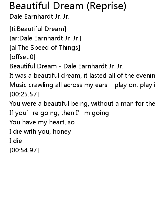 | [00:00.97] | Beautiful Dream Dale Earnhardt Jr. Jr. |