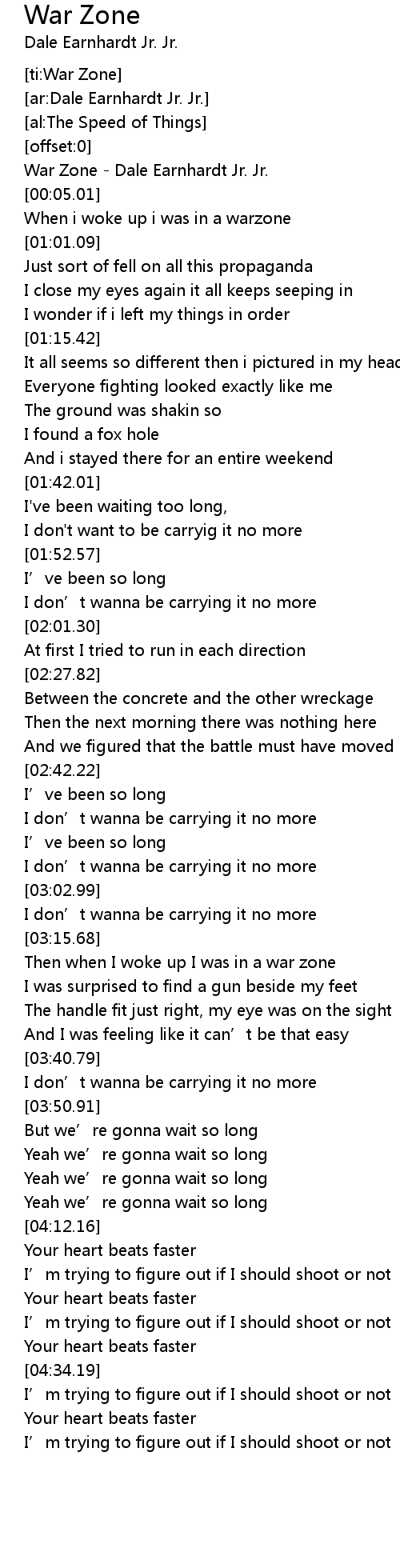 | [00:01.19] | War Zone - Dale Earnhardt Jr. Jr. |