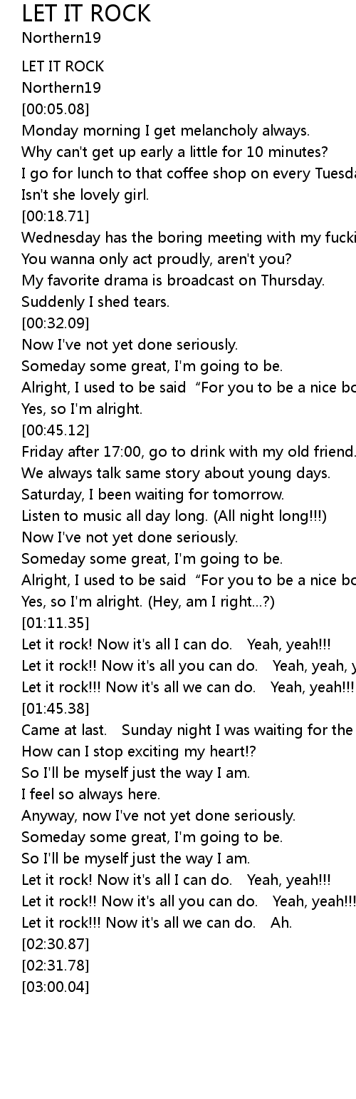 | [02:22.37] | Let it rock!!! Now it's all we can do. Ah. |