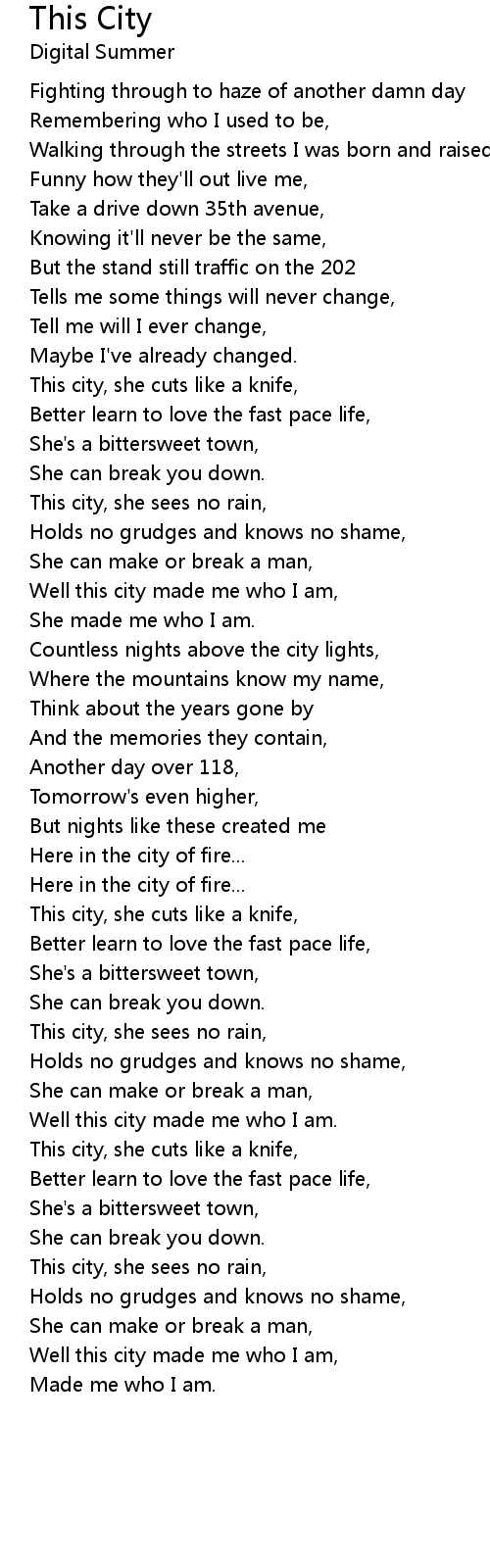 This city, she cuts like a knife, |