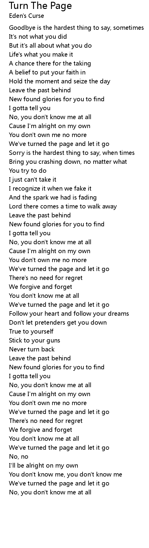 We've turned the page and let it go |
