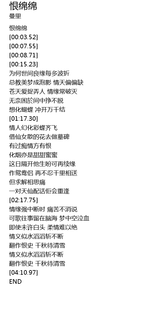 | [00:00.00] | 恨绵绵 |