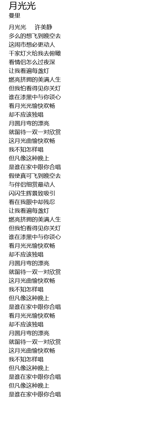 | [00:00.00] | yuè guāng guāng xǔ měi jìng |