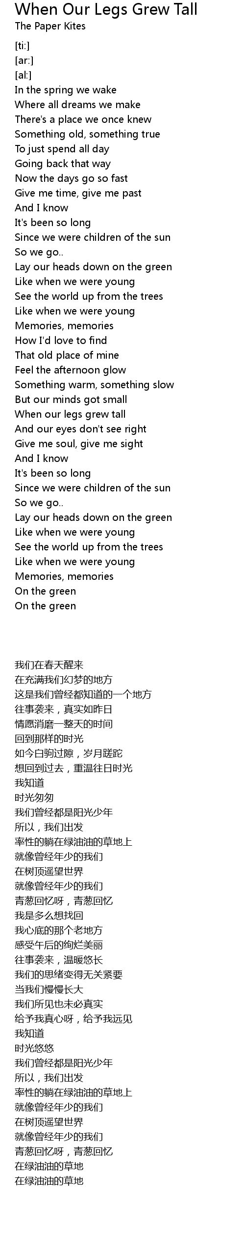 When our legs grew tall |