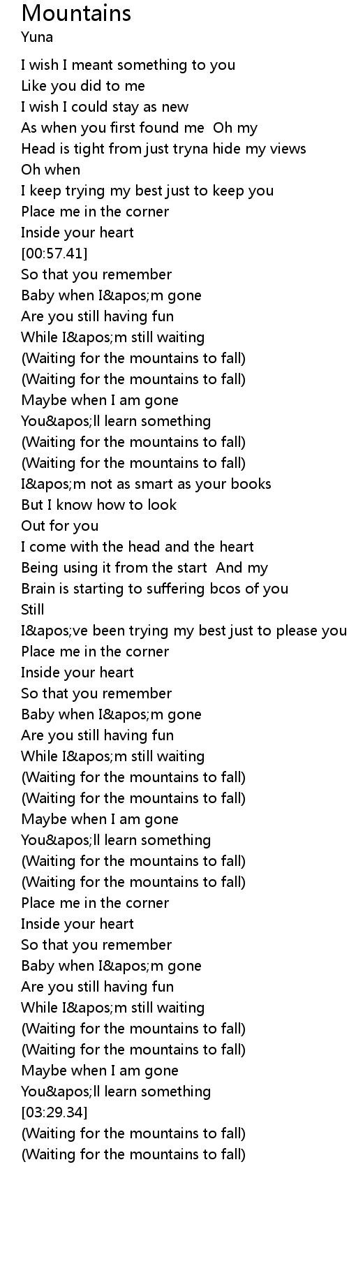 | [03:32.00] | (Waiting for the mountains to fall) |