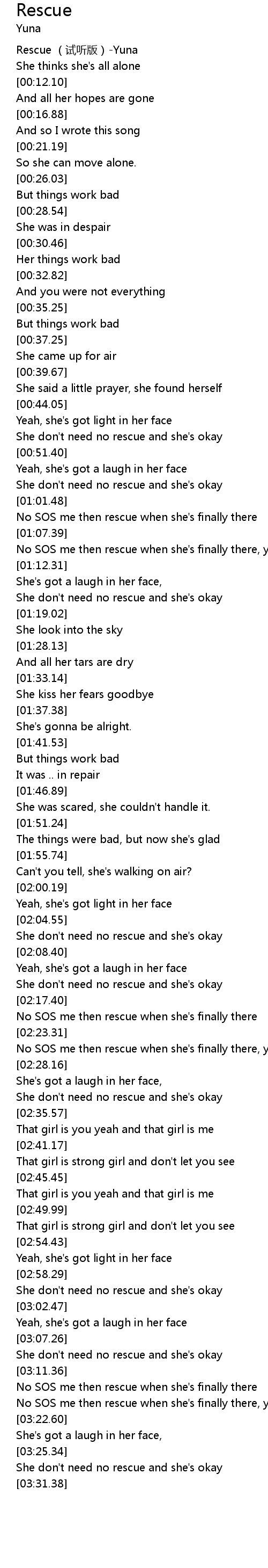 | [00:01.04] | Rescue (试听版)-Yuna |