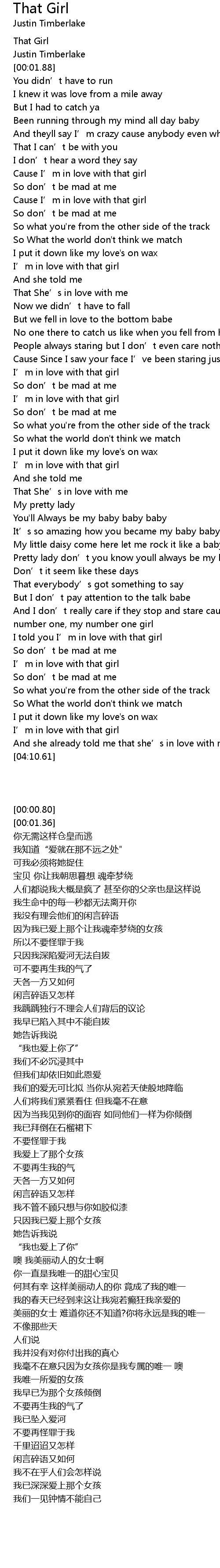 | [03:23.25] | And I don' t really care if they stop and stare cause this seat my number one, my number one girl |