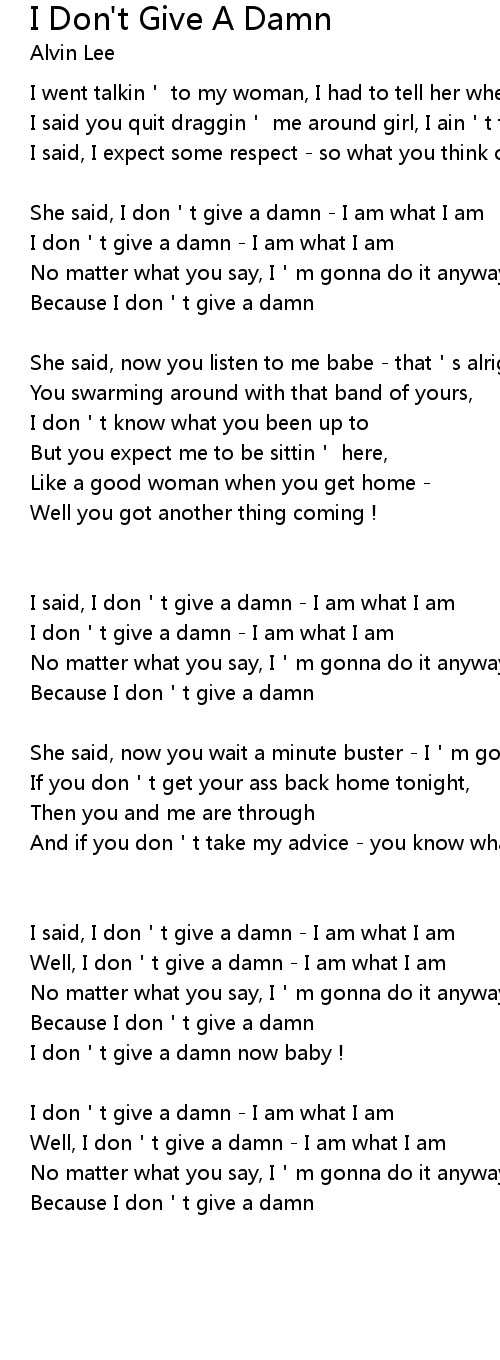 | I don t give a damn I am what I am | |