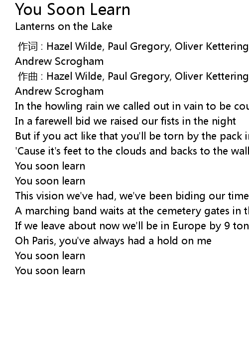 | [00:00.000] | 作词 : Hazel Wilde, Paul Gregory, Oliver Ketteringham, Sarah Kemp, Andrew Scrogham |