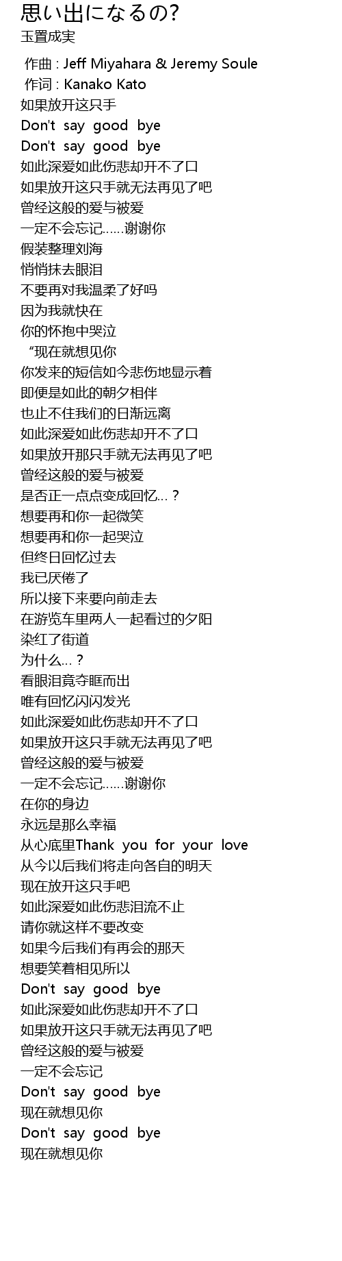 | [00:00.335] | 作词 : Kanako Kato |