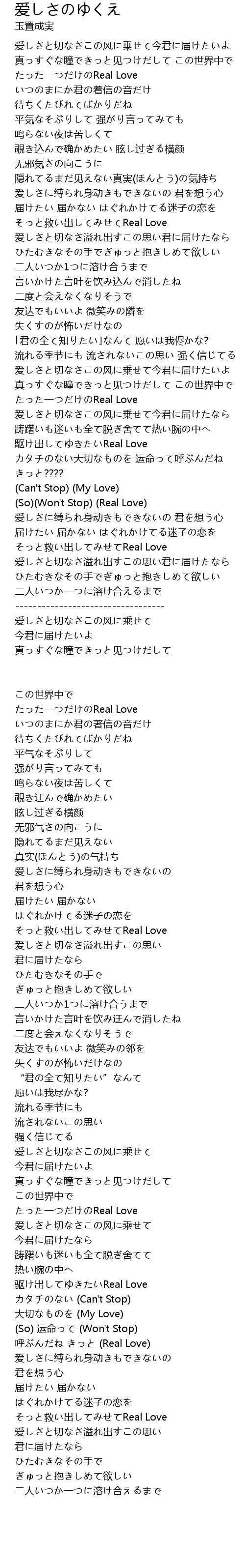 | 爱しさと切なさこの风に乗せて今君に届けたいよ | |