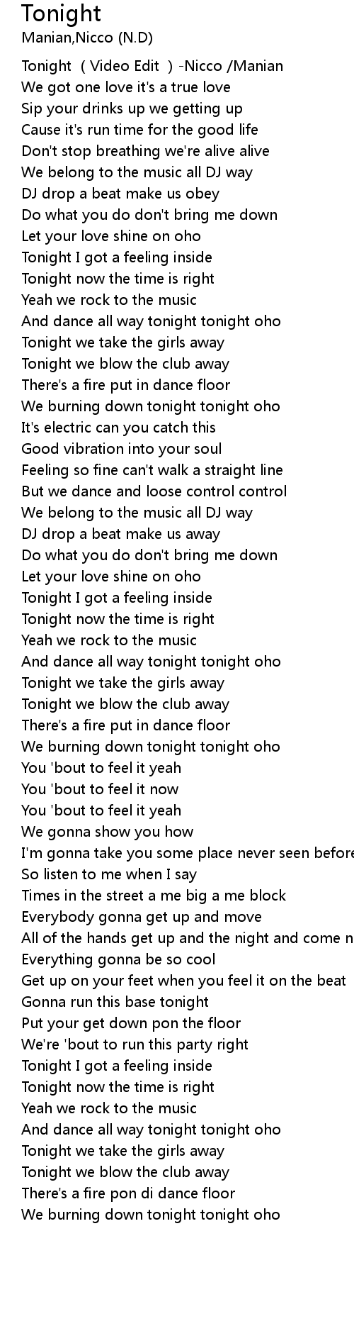 | [00:00.00] | Tonight Video Edit Nicco Manian |