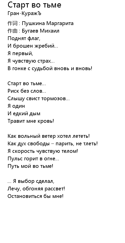 | Song | Старт во тьме |