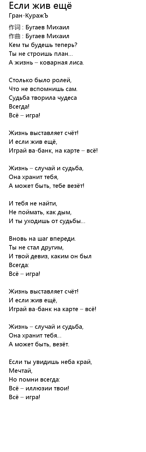 Если жив ещё  Lyrics