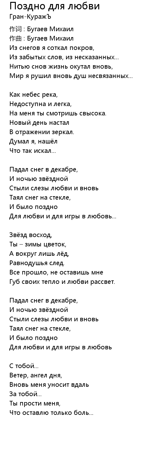 作词 : Бугаев Михаил |